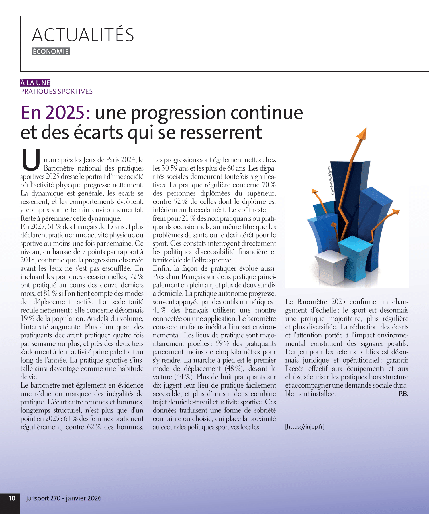 Un an après les Jeux de Paris 2024, le Baromètre national des pratiques sportives 2025 dresse le portrait d’une société où l’activité physique progresse nettement. La dynamique est générale, les écarts se resserrent, et les comportements évoluent, y compris sur le terrain environnemental. Reste à pérenniser cette dynamique.[…]